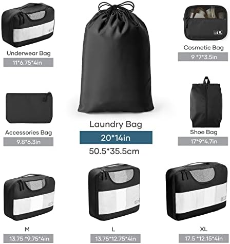 Designed with efficiency and durability in mind, this luggage organizer set consists of 8 high-quality packing cubes in various sizes, including Extra Large, Large, Medium, and Small, ensuring a perfect fit for all your travel essentials. Made from premium nylon fabric, these cubes are not only lightweight but also water-resistant, providing an extra layer of protection for your belongings.