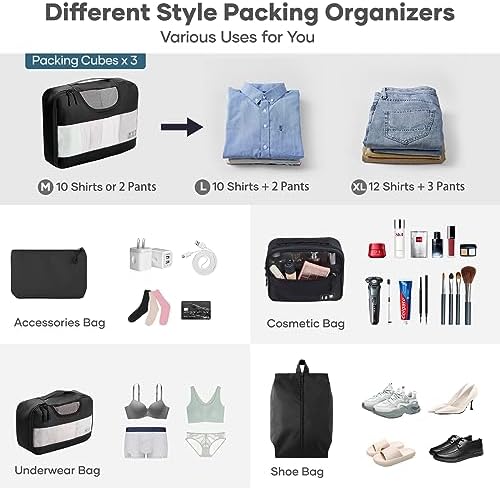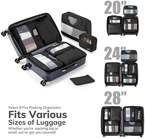 Introducing the Veken 8 Set Packing Cubes for Suitcases, the ultimate travel companion to keep your belongings organized and easily accessible throughout your journey. Whether you’re a frequent traveler or just planning your next vacation, these travel bag organizers will revolutionize the way you pack.