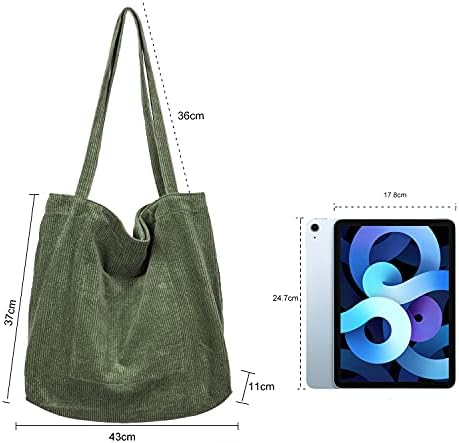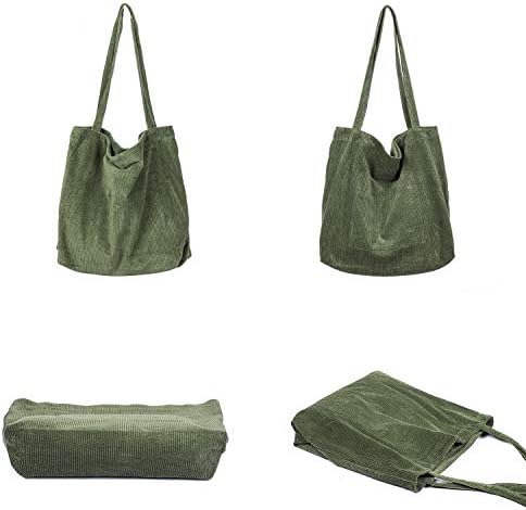 With its trendy army green color, this tote bag exudes an effortlessly cool vibe and complements a wide range of outfits. It is expertly constructed from premium-quality corduroy material, which not only enhances its durability but also adds a touch of luxurious texture.